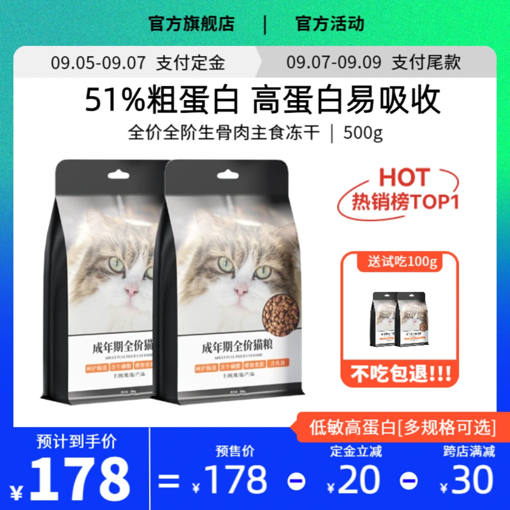 以黄白醒目的配色突出顶部卖点与价格信息,1:1主图规范适配多平台。布局清晰、阅读友好,有助于快速传达优惠与产品优势,适用于宠物食品与用品的店铺促销与爆款推荐。支持文字与标签灵活调整。