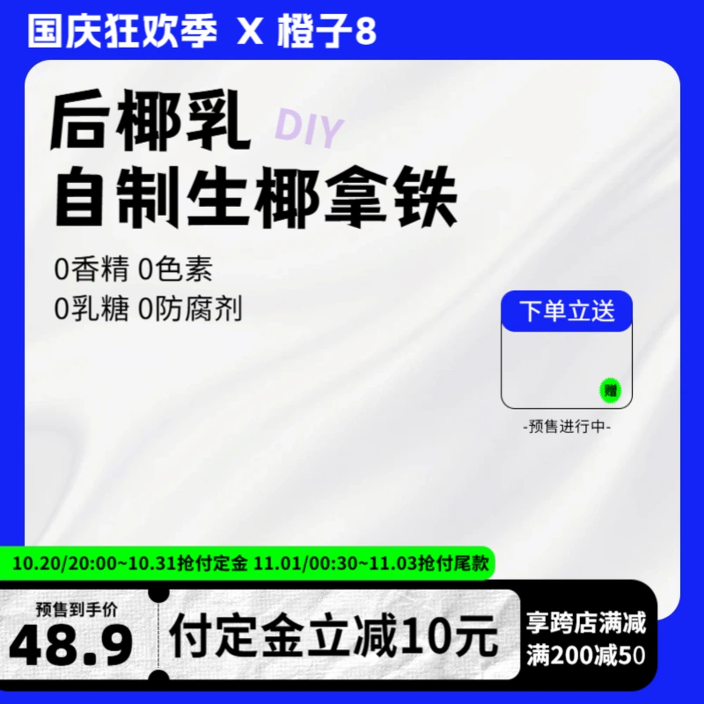 白橙活力色调强化商品包装与优惠信息,1:1标准比例适配淘宝、天猫、拼多多与抖音。版式规范、层级清晰,支持快速替换商品、Logo与促销标签,适合新品上新与店铺促销,提升点击与转化。