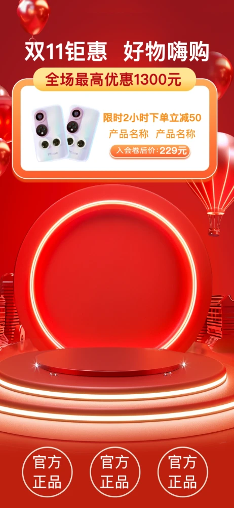 模板特点:红色狂欢,氛围热烈;数字醒目,刺激冲动消费