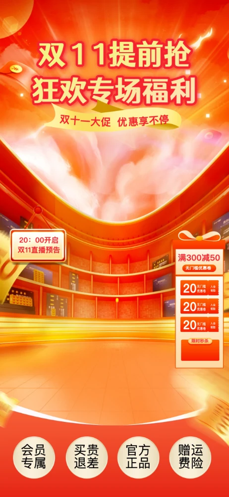 竖屏直播背景|双十一|通用电商清晰结构