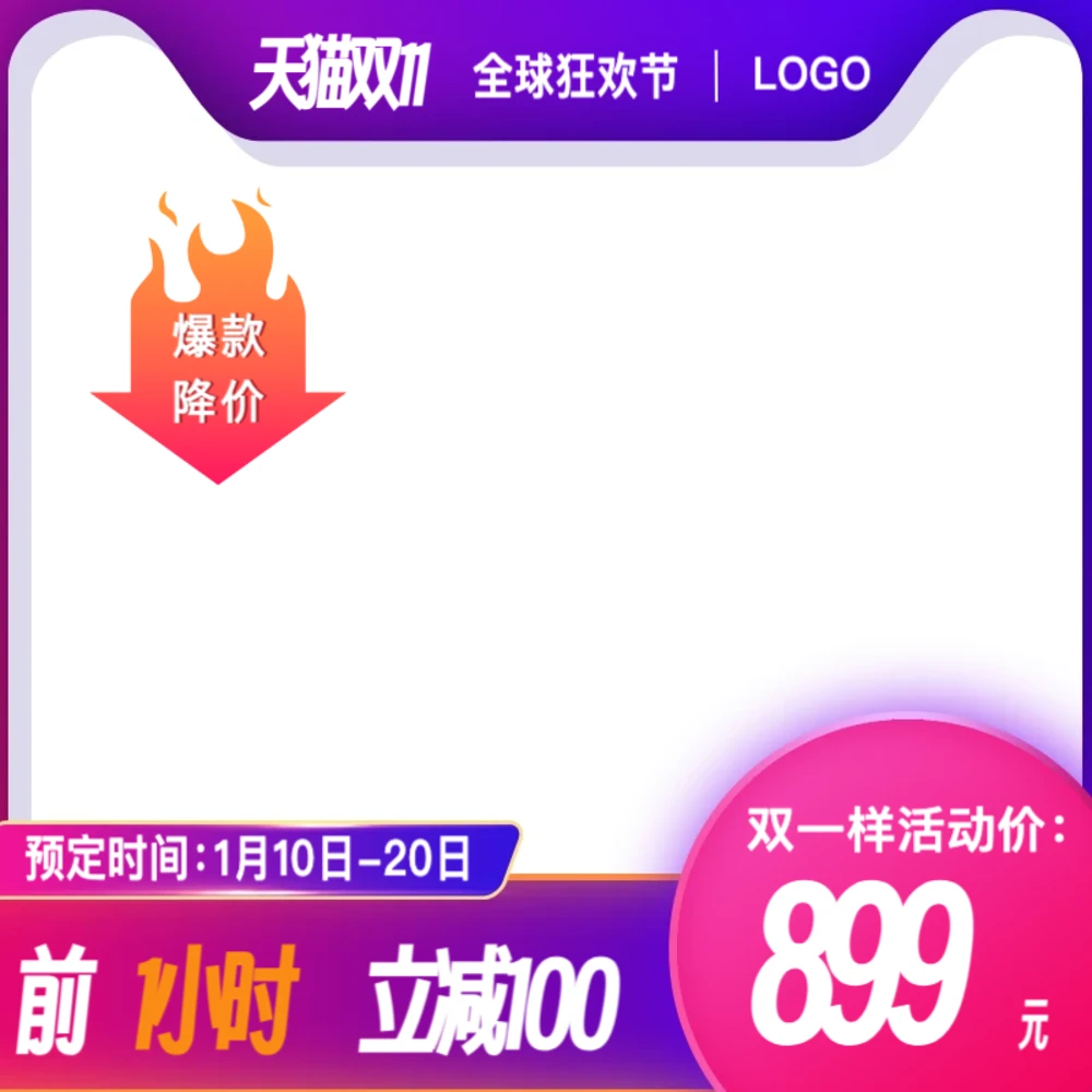 模板说明:高转化率的双十一促销主图模板,1:1比例。设计风格热烈奔放,拥有醒目的折扣标签与“双11”字样。适配淘宝、天猫等平台。通用性强,适合各类参与大促的商品,特别是限时秒杀与爆款直降产品,有效吸引流量。