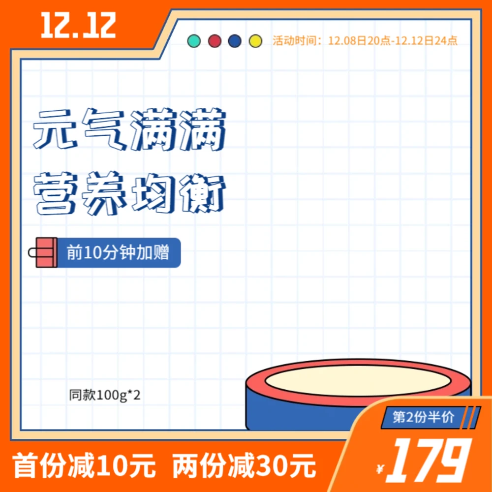 模板说明:双十二节点的商品主图模板,采用醒目促销风与1:1标准比例,结构清晰、信息易读。适配淘宝、天猫、京东、拼多多及Amazon、TikTok,适用于通用行业的主图展示与活动入口。
