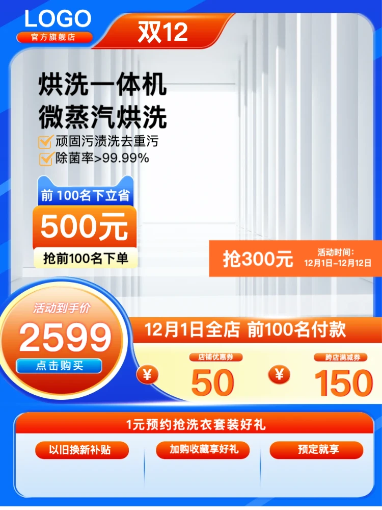 商品主图模板(3:4)|双十二|数码家电淡蓝