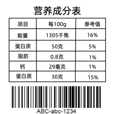 模板说明:通用食品营养成分表标签模板,采用1:1方形设计。提供标准化的能量、蛋白质、脂肪等营养素展示格式。适配多种食品包装背面,确保完全符合国家强制性标签标准(GB 28050)。
