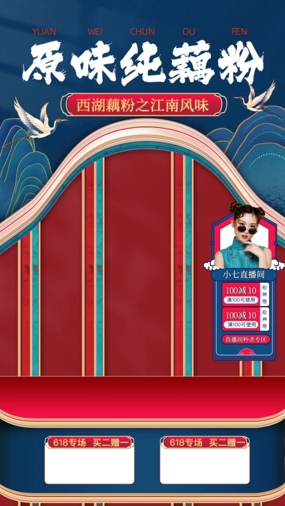一款通用性极强的现代简约风竖版直播背景模板。设计去除繁杂装饰,以淡雅色彩为主,旨在最大程度突出主播与商品本身。竖屏构图符合手机端观看习惯,视觉体验舒适,长时间观看也不易视觉疲劳。适用于服装、百货等全品类的日常直播或大促活动。背景预留了规范的信息分区,方便主播展示直播主题或正在讲解的商品,是提升直播间专业形象的基础必备款。