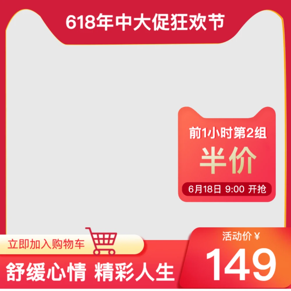 专为618年中大促设计的通用电商主图模板,采用红橙配色,营造热烈促销氛围。1:1比例适配淘宝、京东等全平台。适合各类目商品,尤其是需要强调折扣力度的场景。