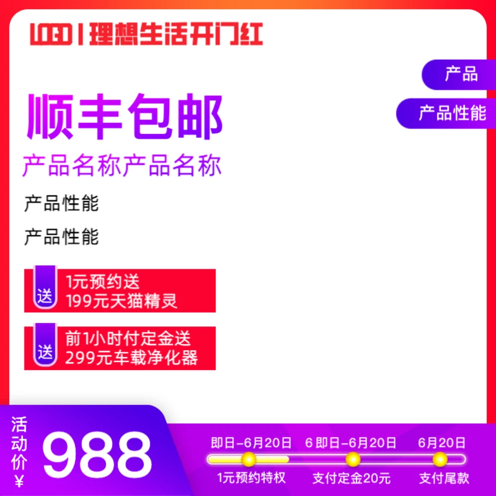 模板特点:红色醒目大促;简约大气;突出商品