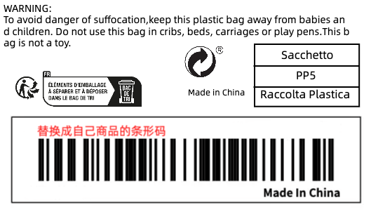 跨境电商标签|Amazon袋装普货多语警示