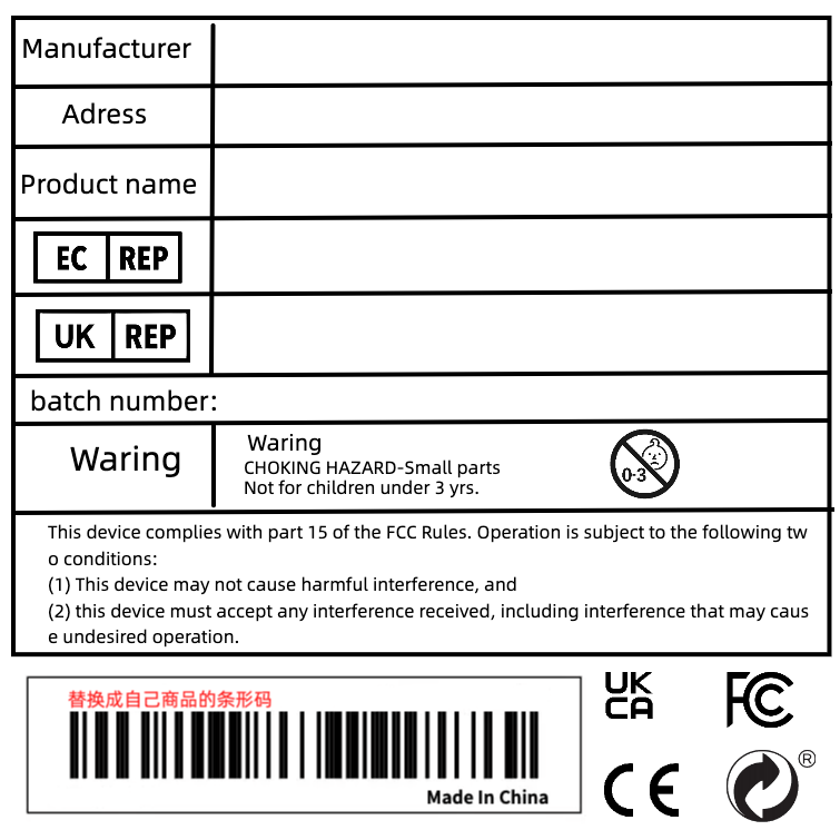 模板说明:集合CE、CPC、FCC多重认证的TEMU母婴标签模板,1:1方形设计。专为出口母婴产品打造,信息布局紧凑规范,满足高标准合规要求,助力产品顺利出海。