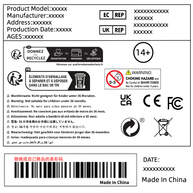 跨境电商标签模板|TEMU玩具十国警示