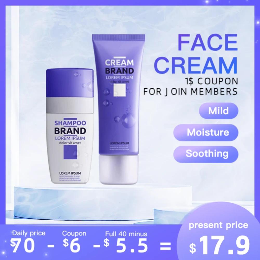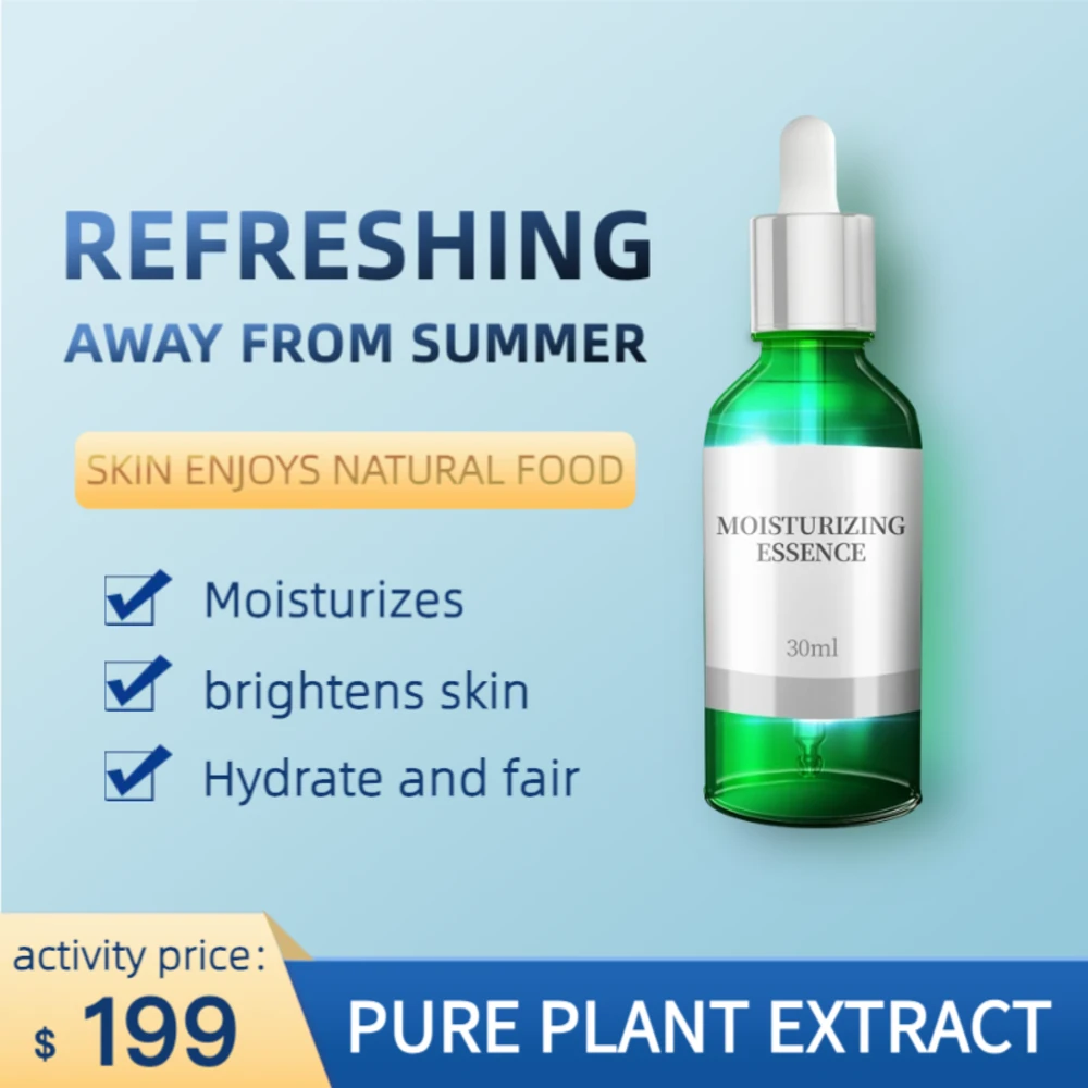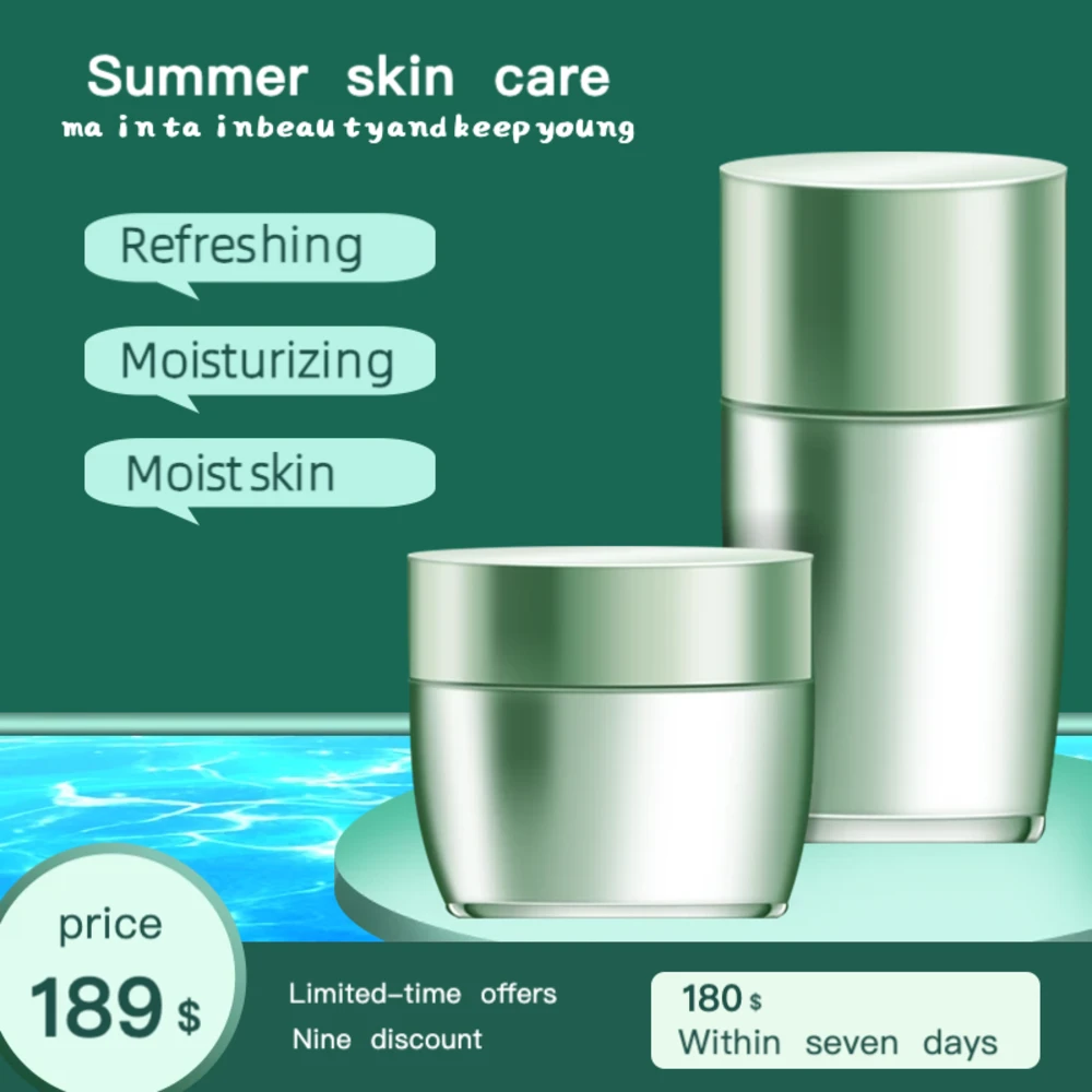 适用于保湿护肤品的跨境电商主图模板,1:1比例。视觉上强调水润感与保湿功效,清新配色符合护肤品类调性。适配TikTok、AliExpress等平台。布局清晰,适合展示面霜、乳液等保湿类产品,吸引追求补水效果的消费者。