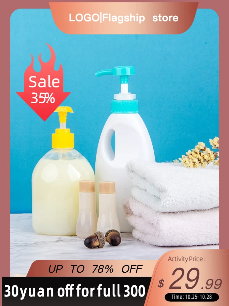通用型跨境电商洗护用品主图模板,1:1比例。设计风格简洁清爽,适合洗发水、沐浴露等日常消耗品。适配Amazon、Shein等平台。布局强调产品的容量与组合优势,适合家庭装或套装产品的展示,提升点击转化。