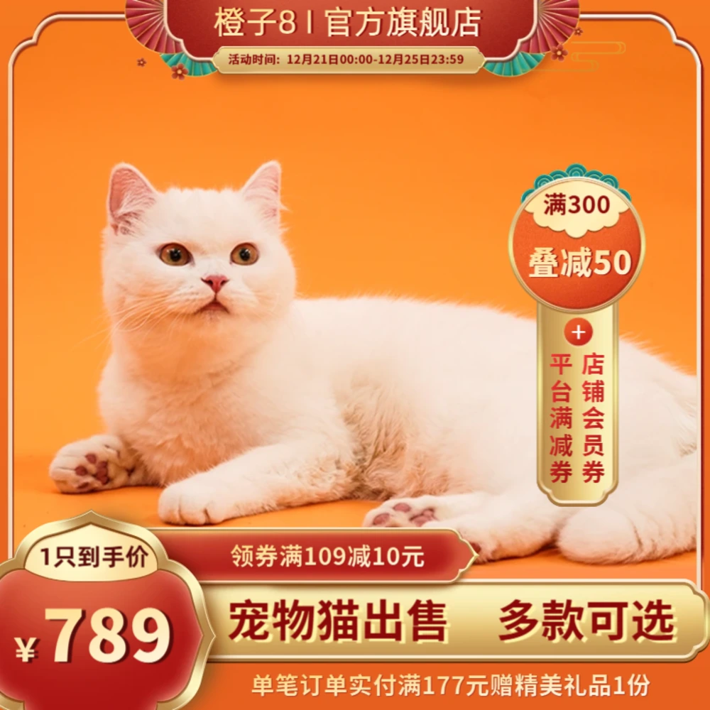 红橙金的喜庆配色,营造节日促销氛围,适用于宠物行业在节庆节点的大促活动。1:1标准主图适配淘宝、京东、抖音等平台,结构分明、信息突出。支持替换商品图与倒计时文案,提升活动曝光与转化效果。