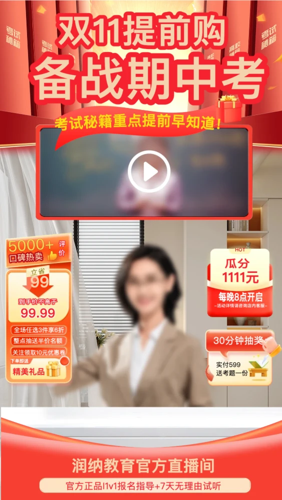 专为双十一美妆专场打造的直播背景,视觉设计清爽且符合平台合规要求。适用于抖音、淘宝直播等主流渠道。模板重点突出主推商品,配合自定义的优惠话术,能有效吸引观众停留。适配美妆个护及洗护用品行业,支持快速替换产品图和修改信息,提升直播间专业度。