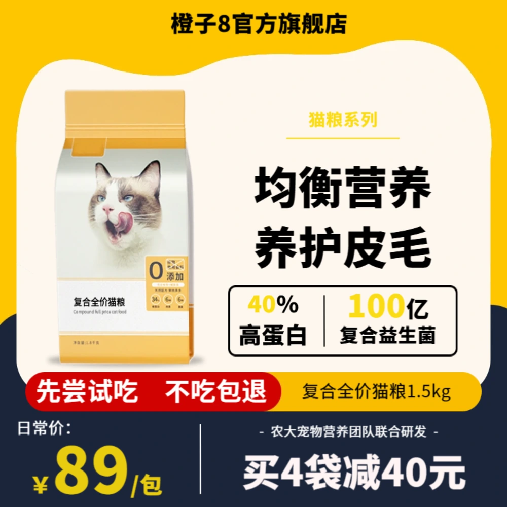 采用米白与橙色的温暖配色,营造亲和的购物氛围。1:1标准主图适配全平台使用,信息易读、结构清晰,适合宠物食品与用品的日常促销与品牌活动。支持快捷替换商品、Logo与优惠信息,提升转化与合规展示效果。