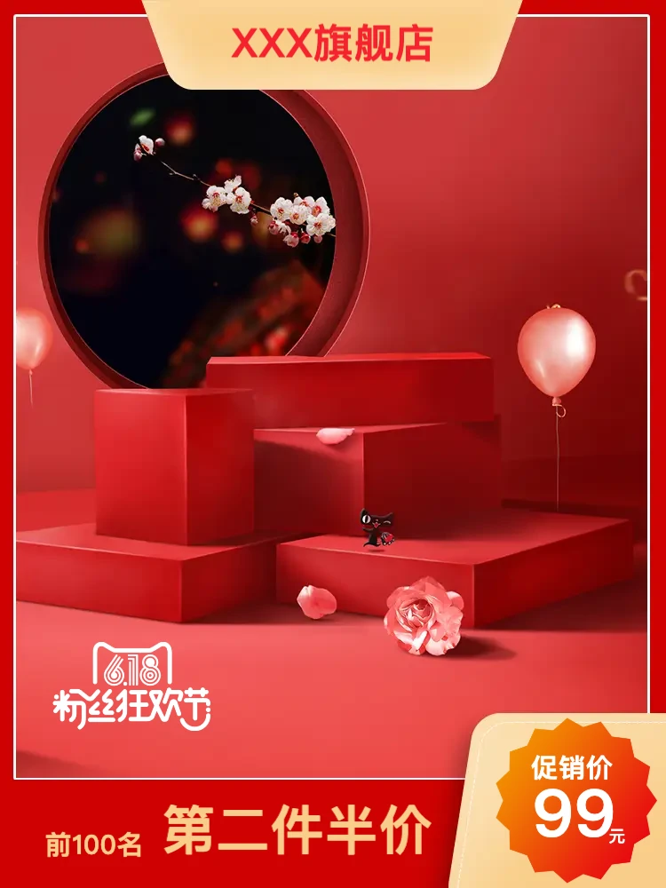 商品主图模板|618电商促销红色展台