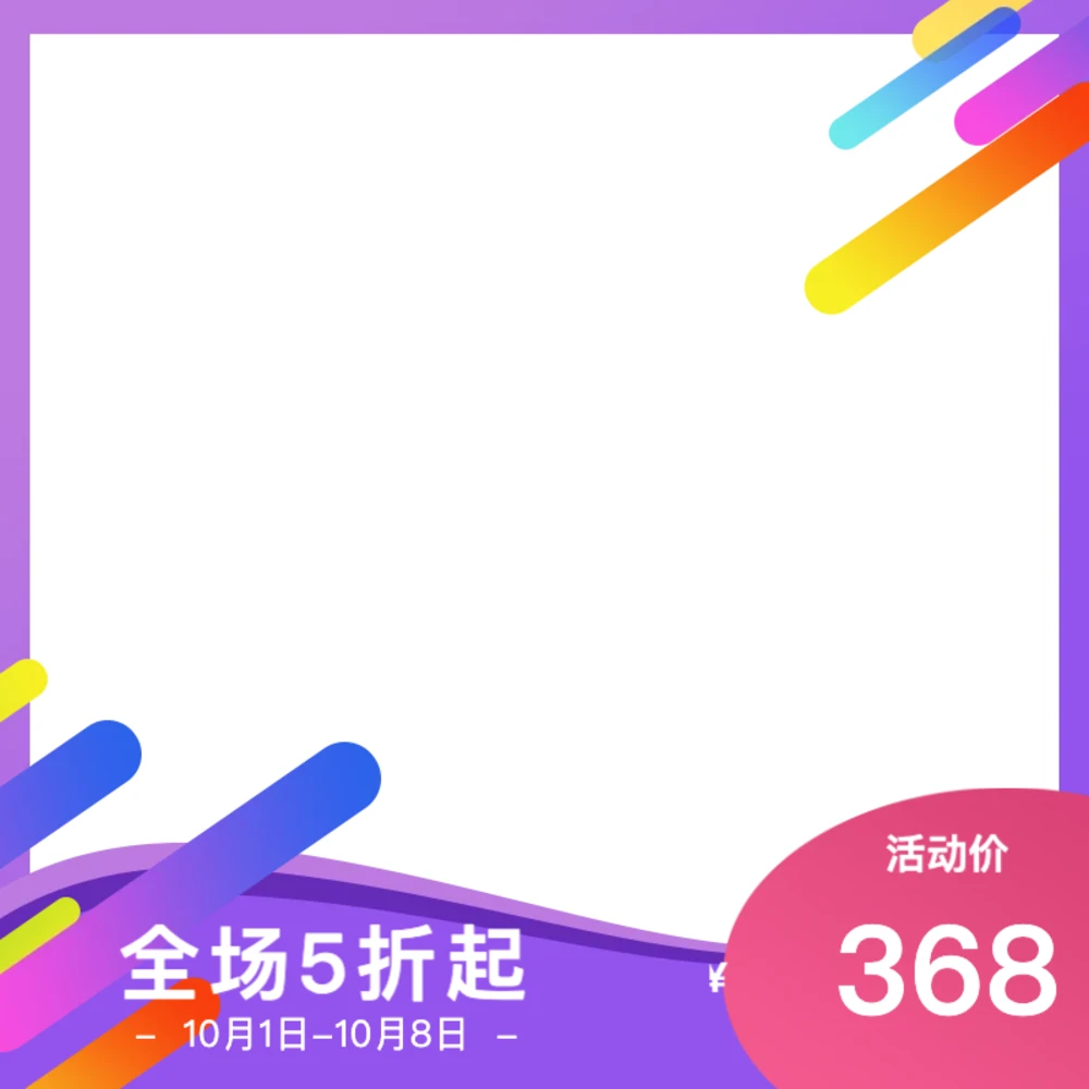 一款活力四射的彩色电商主图边框,采用高饱和度配色,营造热烈的促销氛围。适用于各类电商平台的大促及节日庆典。模板线条设计精致,留白得当,既突出了商品又增强了点击吸引力。建议配合促销文案使用,快速提升店铺流量。