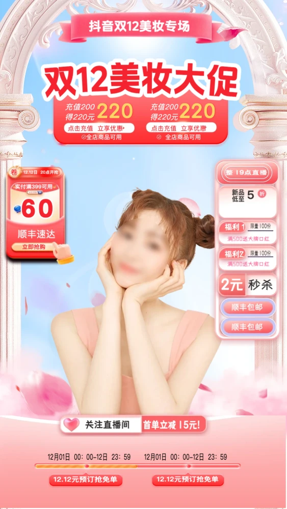 双十二直播背景|美妆个护大促