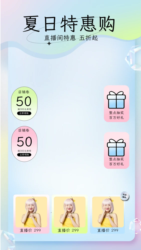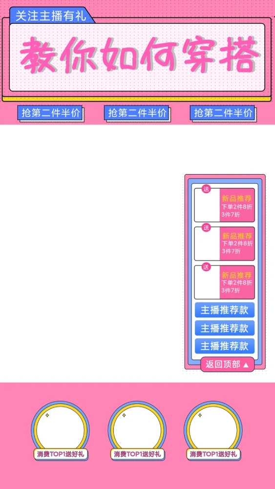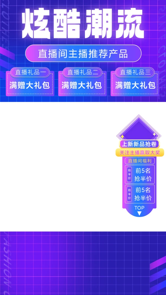 一款通用性极强的现代简约风竖版直播背景模板。设计去除繁杂装饰,以淡雅色彩为主,旨在最大程度突出主播与商品本身。竖屏构图符合手机端观看习惯,视觉体验舒适,长时间观看也不易视觉疲劳。适用于服装、百货等全品类的日常直播或大促活动。背景预留了规范的信息分区,方便主播展示直播主题或正在讲解的商品,是提升直播间专业形象的基础必备款。