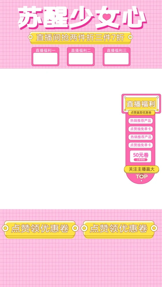 极简主义风格的通用直播背景,摒弃了繁复的装饰,回归直播带货的本质。清爽的色调和科学的竖屏布局,让观众的注意力完全集中在主播和商品上。适用于美妆、日用等各类日常直播。背景侧边预留了简洁的信息栏,方便标注产品卖点或团购价格。这款模板是打造专业、可信赖直播间形象的首选,尤其适合注重内容质量的达人。