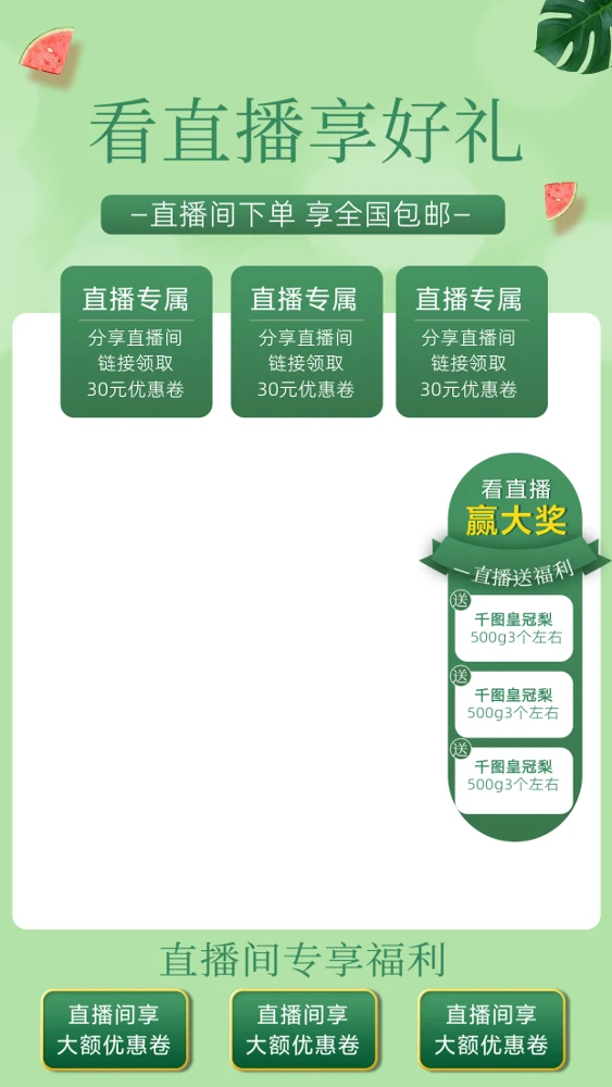 专为春节年货节打造的竖屏直播背景模板,采用经典的红金配色,营造浓厚的节日氛围。结构化的信息布局,左侧或上方预留了清晰的优惠展示区,方便主播展示秒杀、满减等电商活动模板信息。适用于食品、百货等全品类商家。这款背景不仅美观,还能有效提升直播间的停留率和互动热度,助力年货大卖。